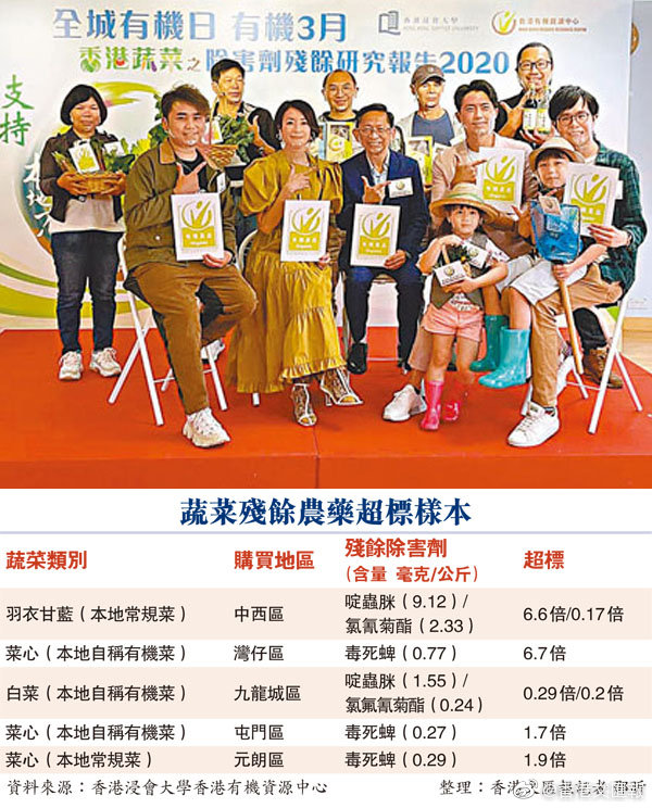 【七成蔬菜含農(nóng)藥 本地菜重災(zāi)】有機構(gòu)調(diào)查顯示,本港蔬菜的農(nóng)藥殘余問題日趨嚴(yán)重,抽樣發(fā)現(xiàn)逾七成蔬菜樣本含有除害劑殘余,近一成的除害劑殘留超標(biāo)。自稱本地農(nóng)場出產(chǎn)的蔬菜成為超標(biāo)“重災(zāi)區(qū)”,一款有機菜心及一款羽衣甘藍(lán),被驗出農(nóng)藥超標(biāo)近7倍。